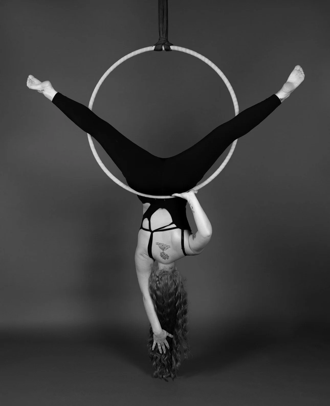 "I started pole about 7 years ago and hoop as soon as the studio opened 5 years ago, I found it very challenging and I still do, but over the last couple of years I've noticed the difference in my strength and being able to do things I never used to be able to.